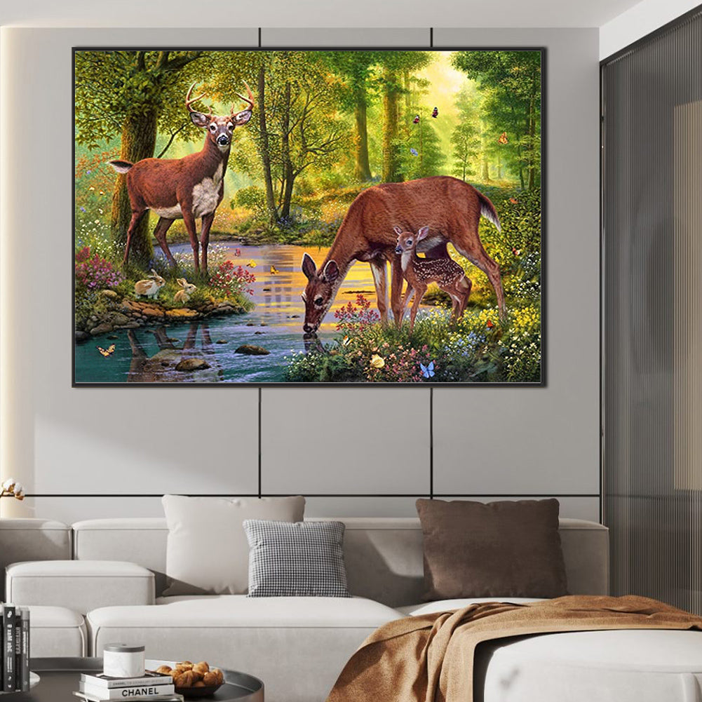 Diamond Painting - Full Square - drinking deer (70*50CM)