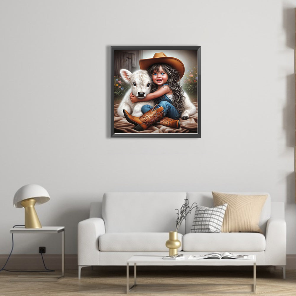 Diamond Painting - Full Square - girl holding sheep (40*40CM)