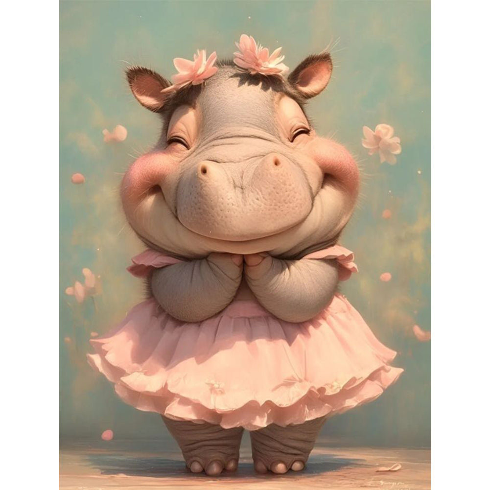 Diamond Painting - Full Square - Hippopotamus in skirts (30*40CM)
