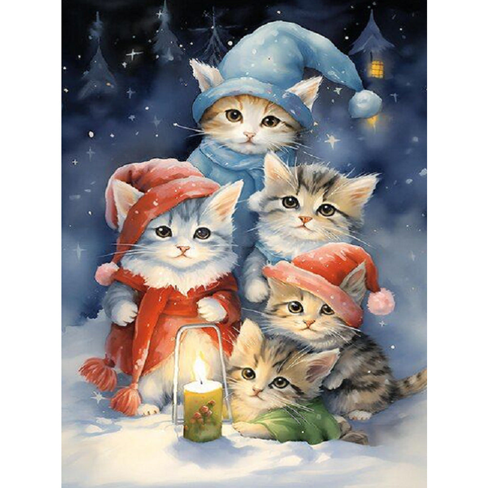 Diamond Painting - Full Square - Santa hat cat (30*40CM)