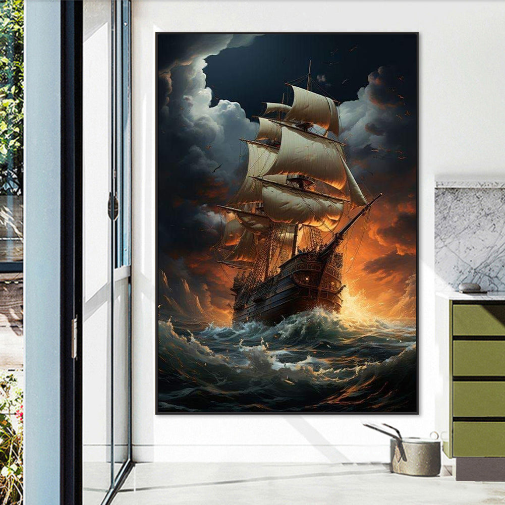 Diamond Painting - Full Square - sea sailing boat (50*70CM)