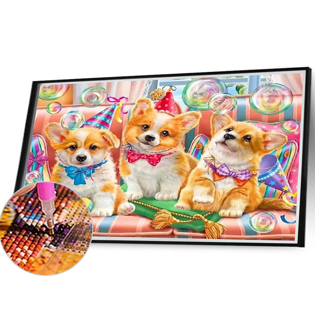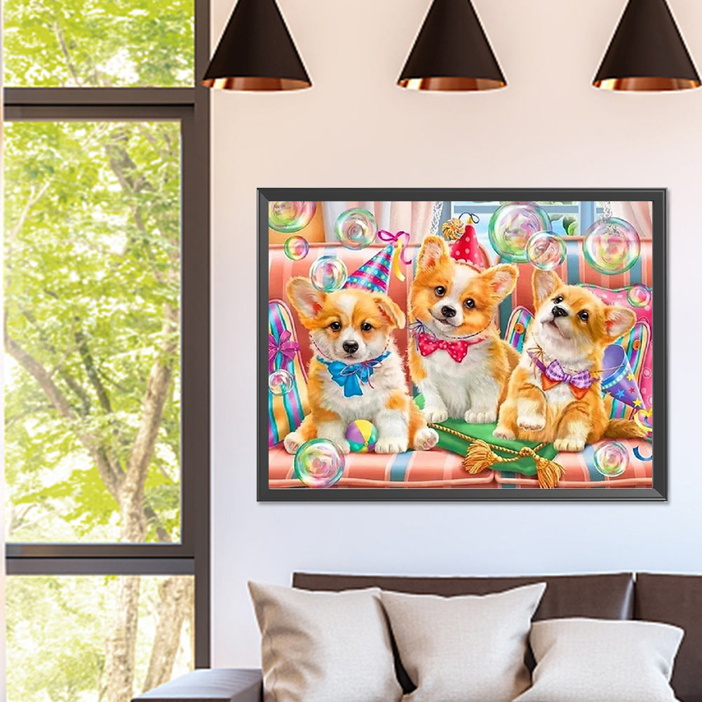 Diamond Painting - Full Square - three puppies (40*30CM)