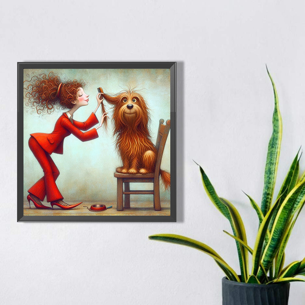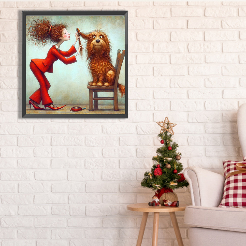 Diamond Painting - Full Square - Woman in red and dog (30*30CM)