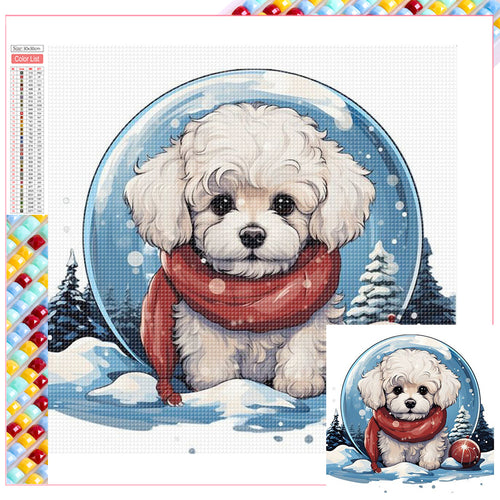 Diamond Painting - Full Square - Winter crystal ball christmas puppy (30*30CM)
