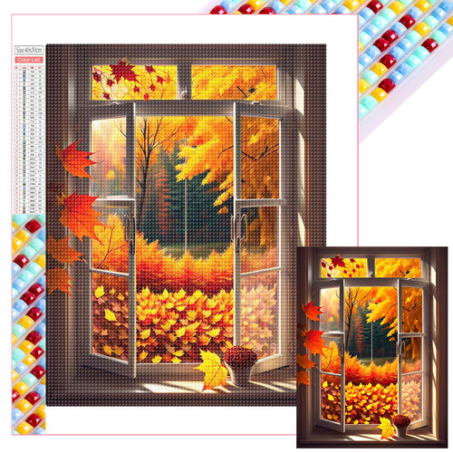 Diamond Painting - Full Square - Autumn leaves outside the window (30*40CM)