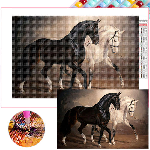 Diamond Painting - Full Square -black horse white horse (70*45CM)