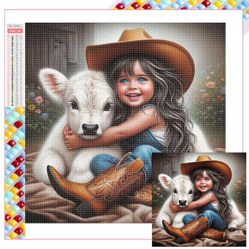 Diamond Painting - Full Square - girl holding sheep (40*40CM)