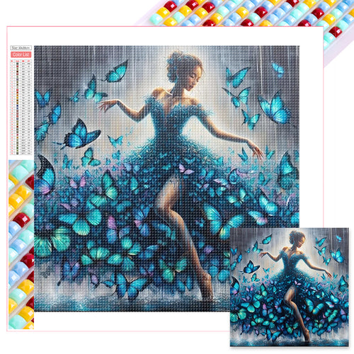 Diamond Painting - Full Square - blue butterfly dancing (30*30CM)