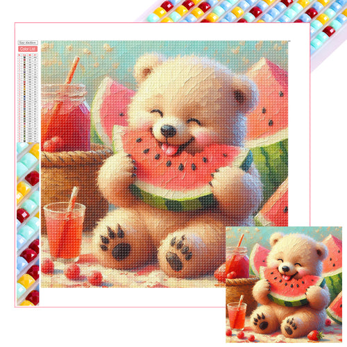 Diamond Painting - Full Square - Bear Eating Watermelon (30*30CM)