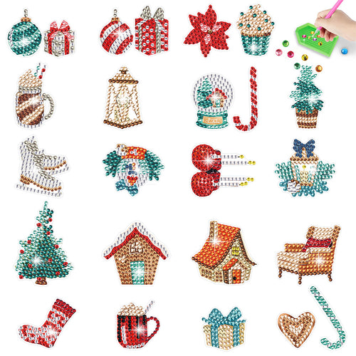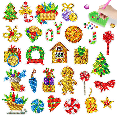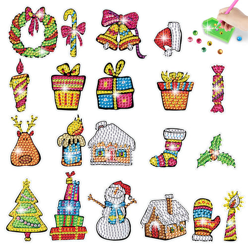2PCS Christmas Gem Art DIY Craft Kit Diamond Painting Sticker (Xmas Element)