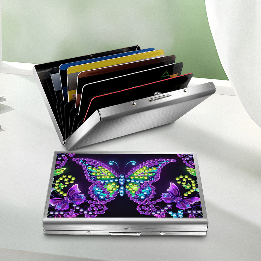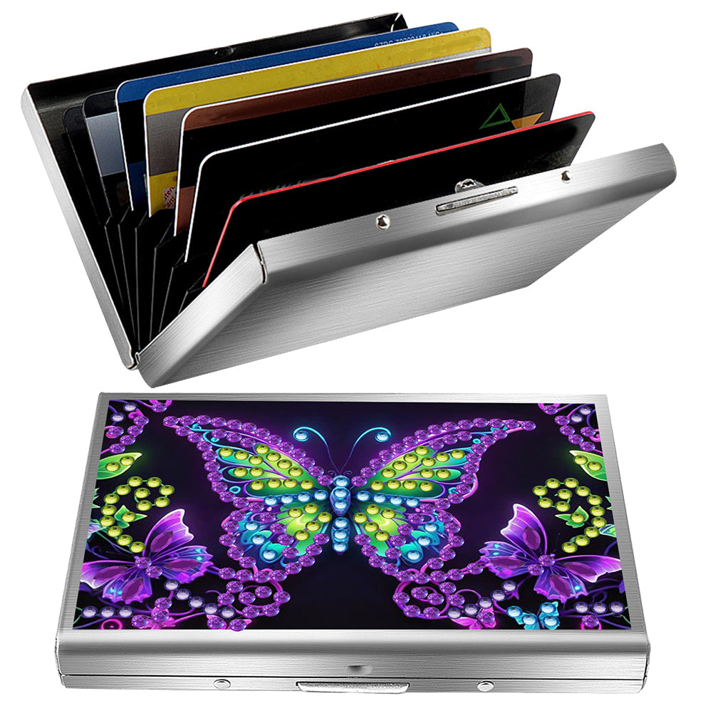 Diamond Art Stainless Steel Coin Purse Butterfly ID Card Holder Case for Adults