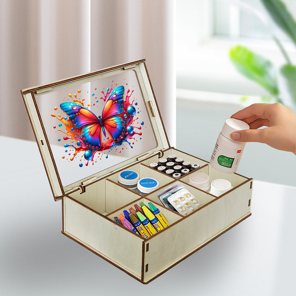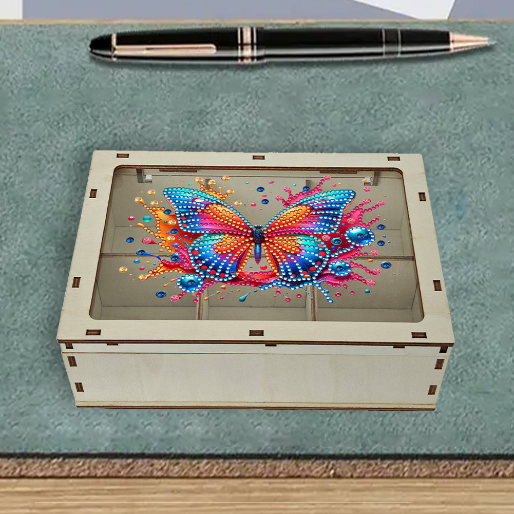 Diamond Art Storage Case Wooden Diamond Painting Container Box (Butterfly)