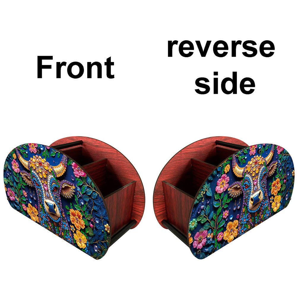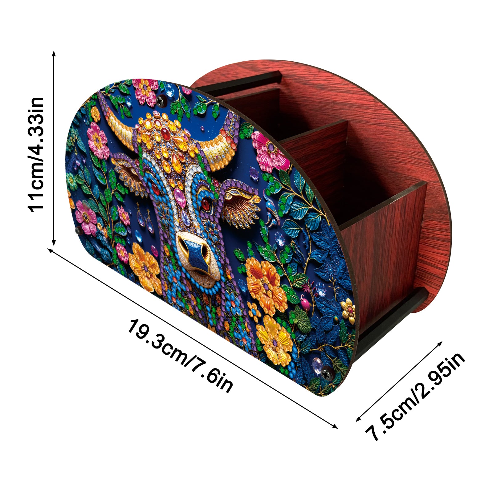 DIY Gem Cow Design Wooden Diamond Painting Makeup Brush Storage Box Organizer