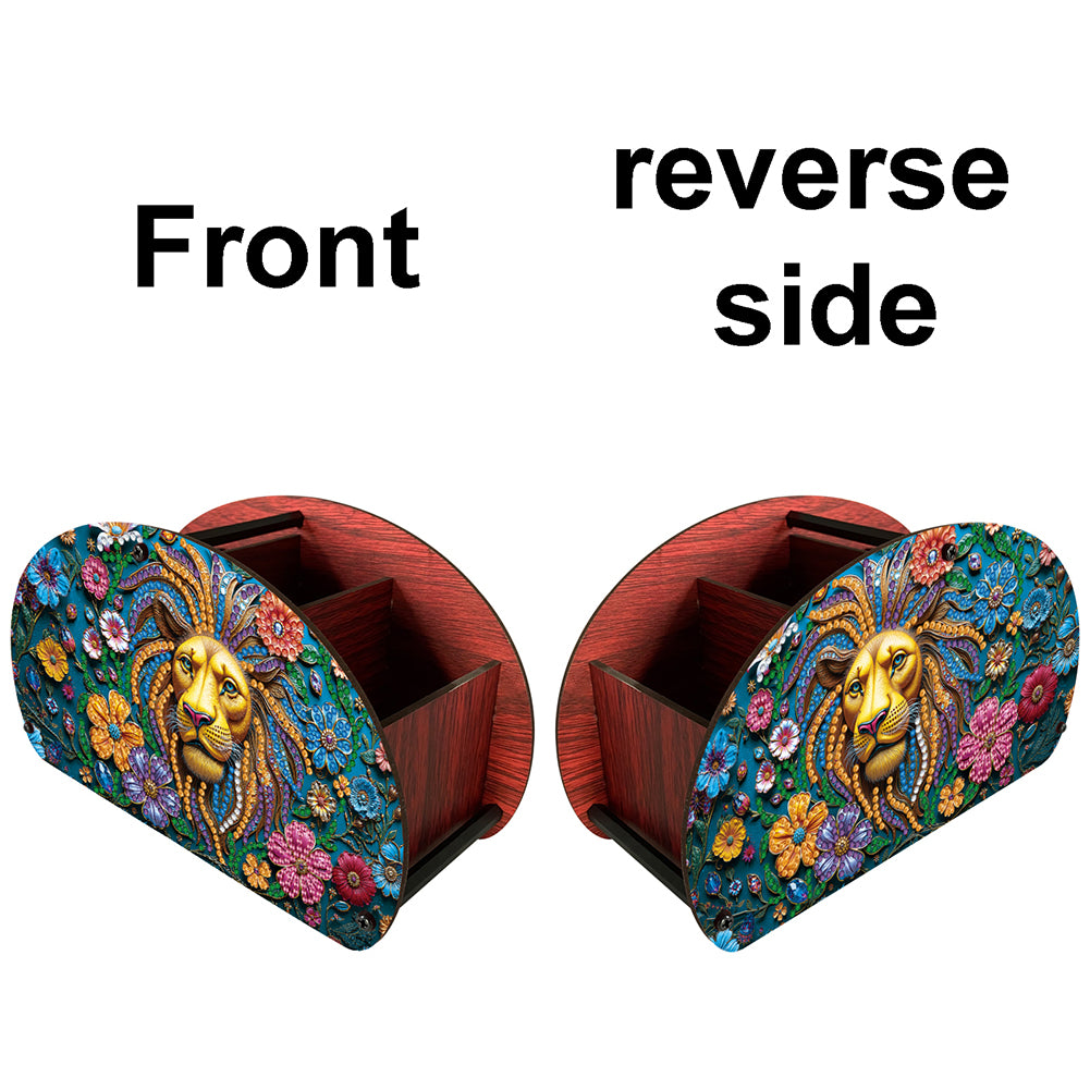 DIY Gem Lion Design Wooden Diamond Painting Makeup Brush Storage Box Organizer