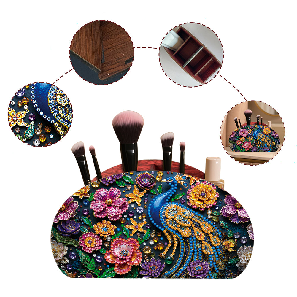 DIY Gem Peacock Design Wooden Diamond Painting Makeup Brush Storage Box Kit