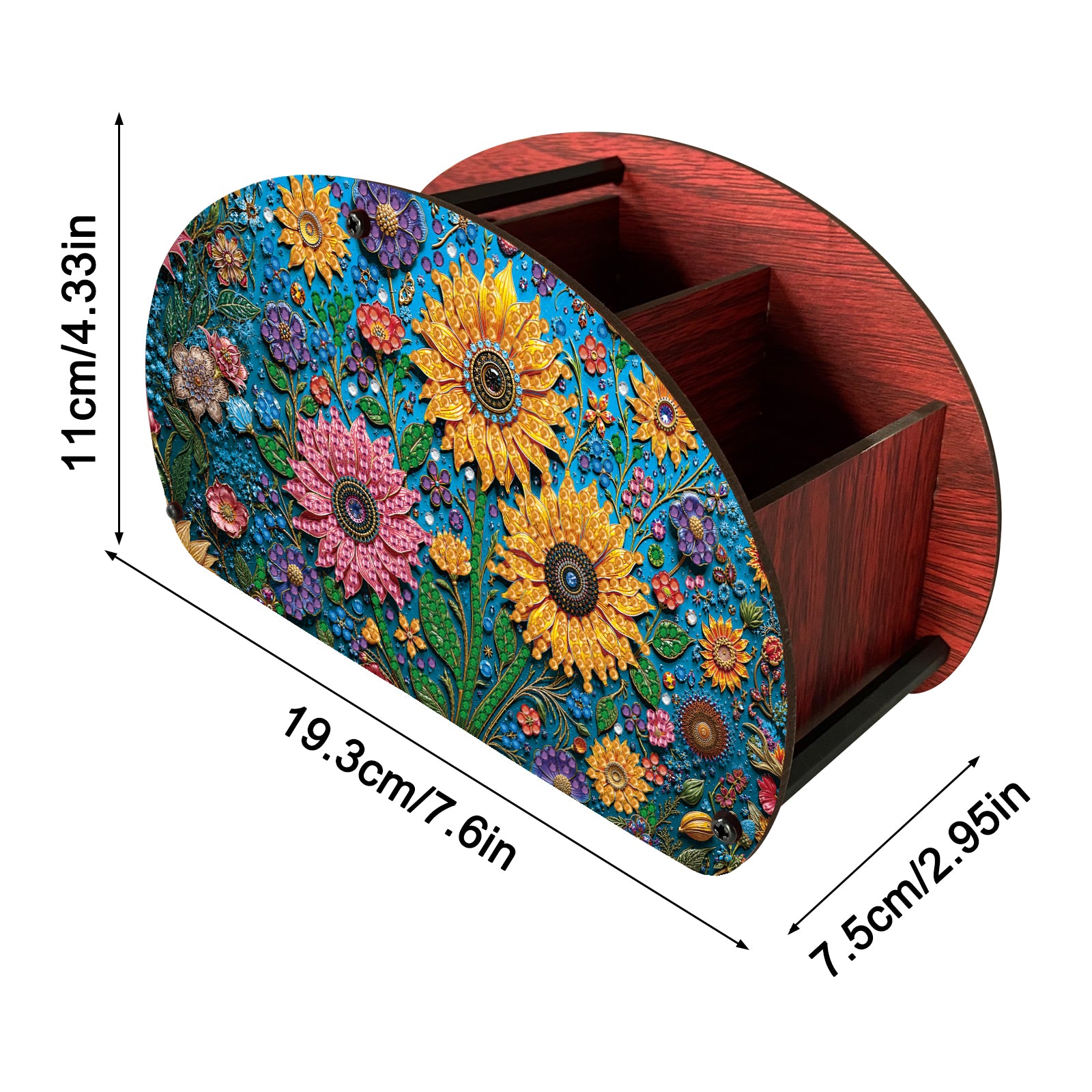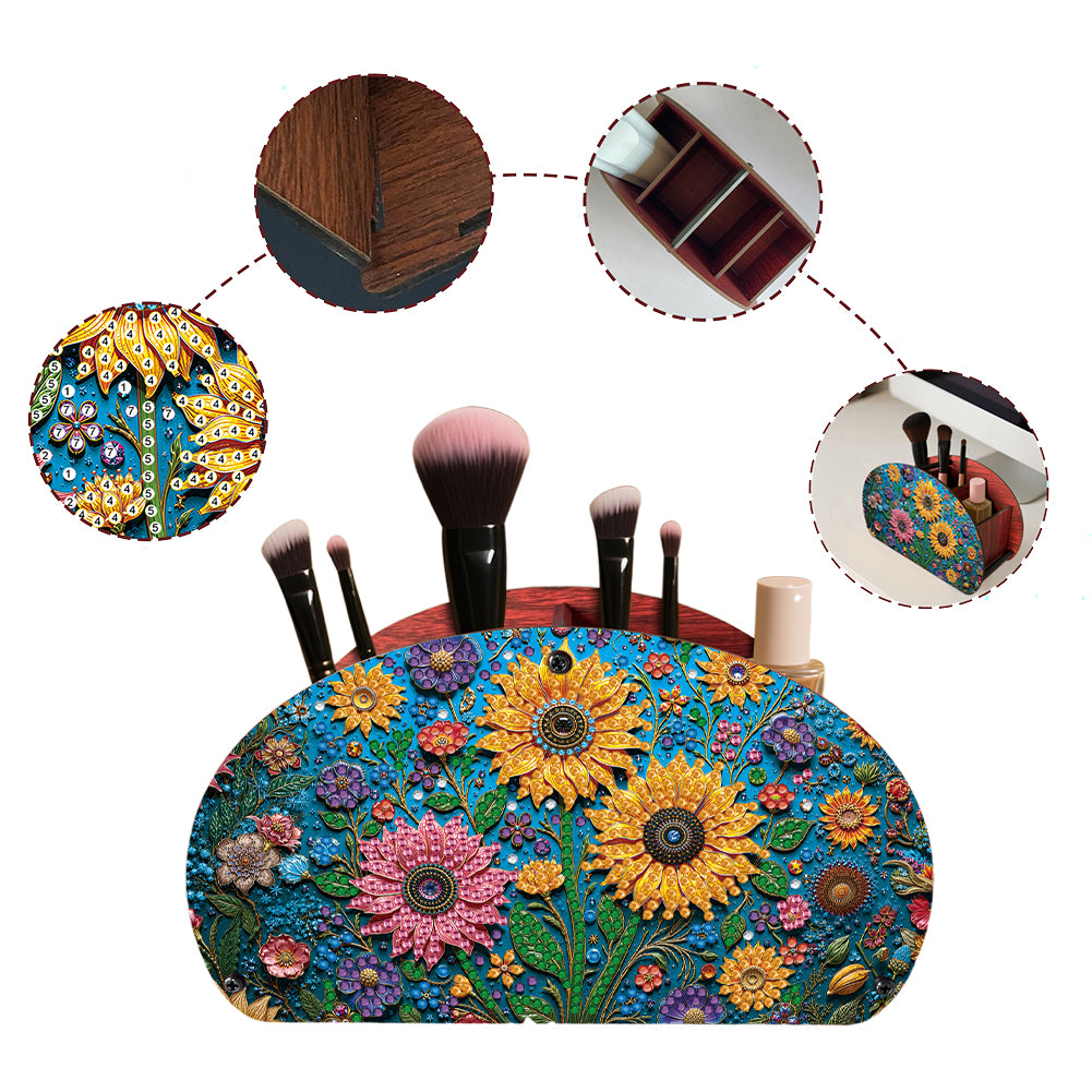 DIY Sunflower Design Wooden Diamond Painting Makeup Brush Storage Box Organizer