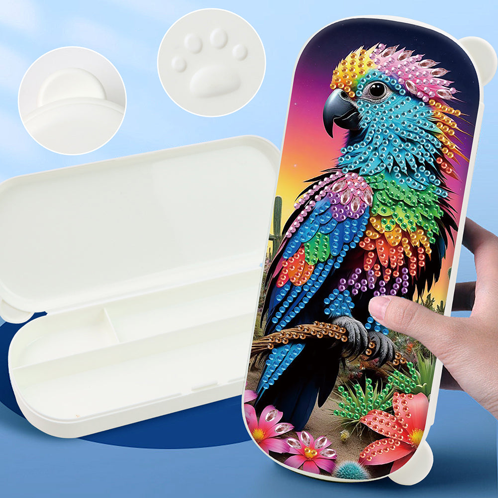 Parrot Pattern DIY Diamond Pencil Case Pen Brushes Accessories Travel Pencil Box