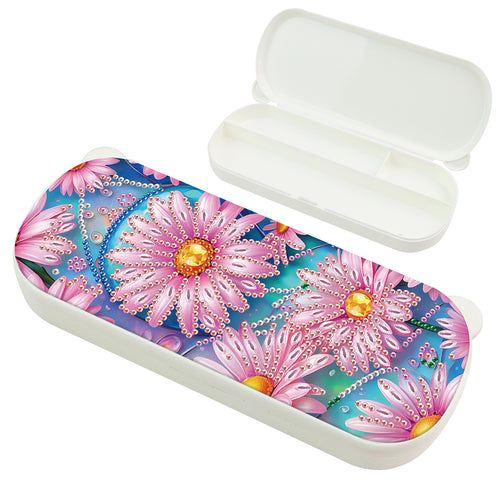Daisy Pattern DIY Diamond Pencil Case Pens Brushes Accessories Travel Pencil Box