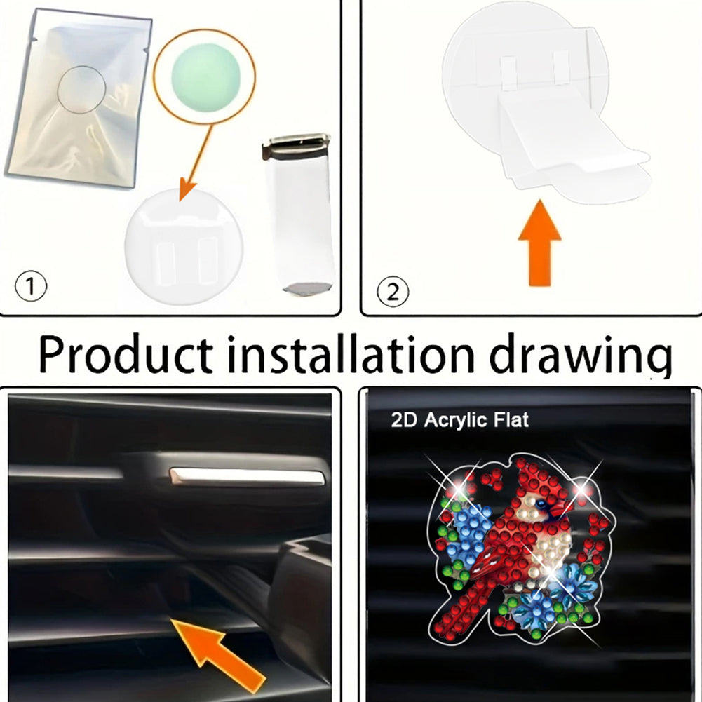 3.Step-by-Step Creation for diamond art car air vent clip aromatherapy kit: Utilize our easy-to-follow process by lifting colored resin gems with the provided tool and placing them on their corresponding numbers on the template.