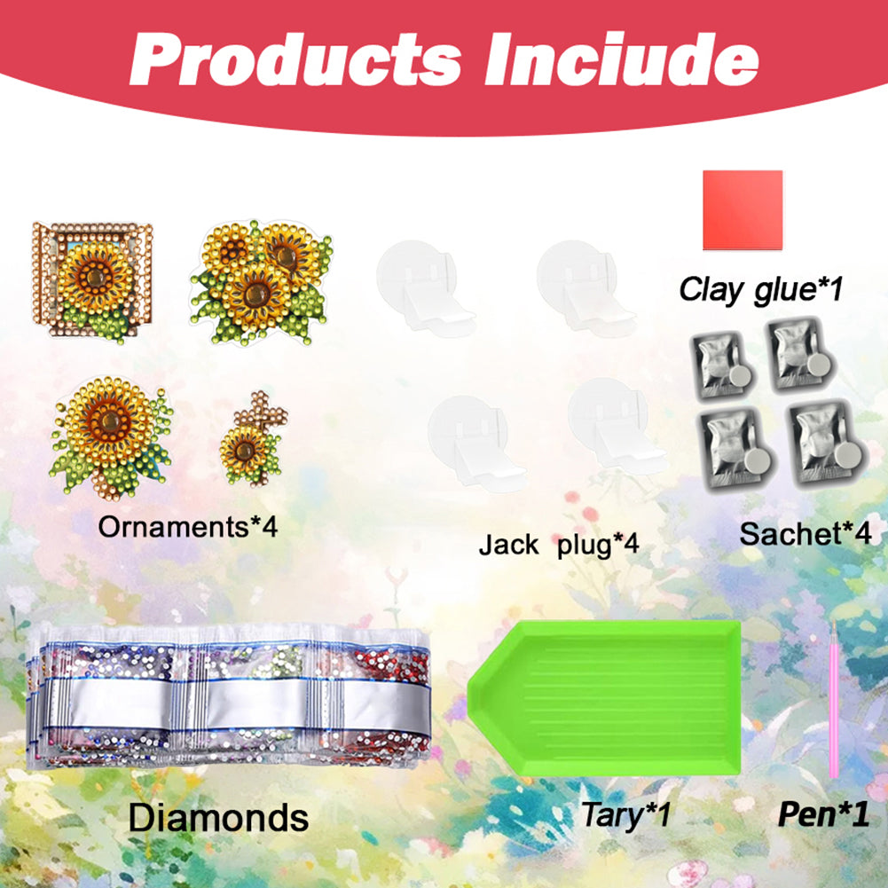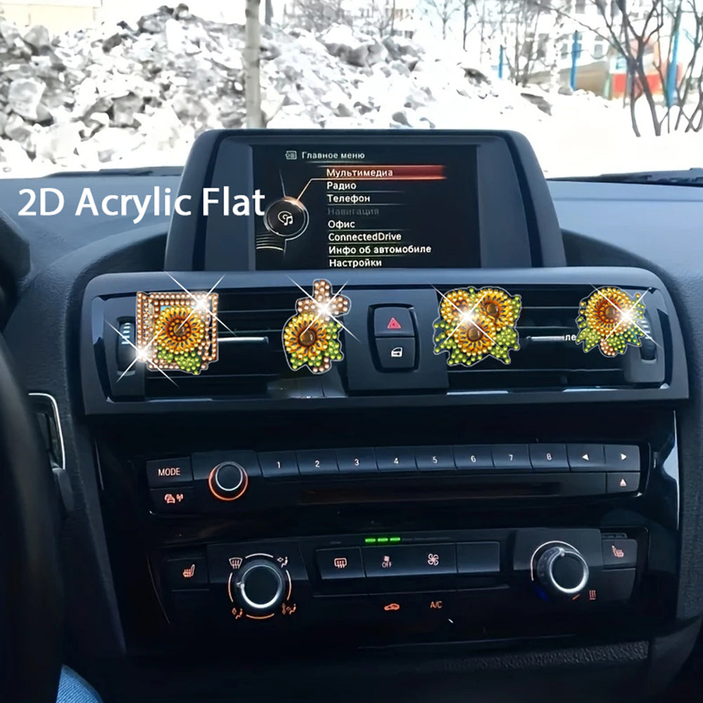 Sunflower 4 Pc/ Set DIY Diamond Car Air Freshener Diamond Art Car Air Vent Clip Aromatherapy Car Interior Accessories for Adults Beginners Paint Craft Supplies Car Air Conditioning Outlet Clip