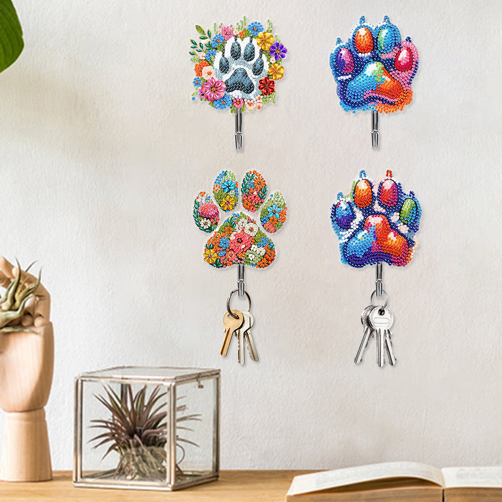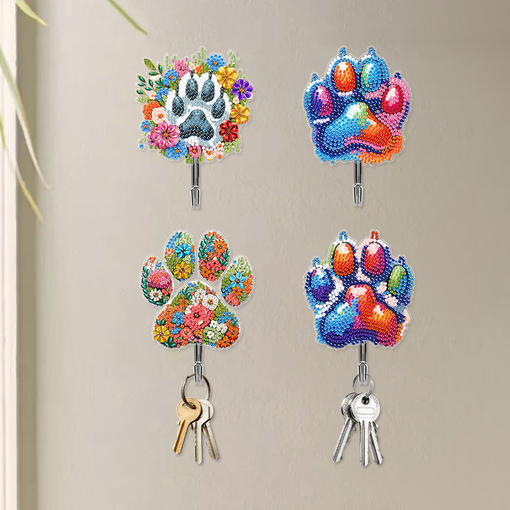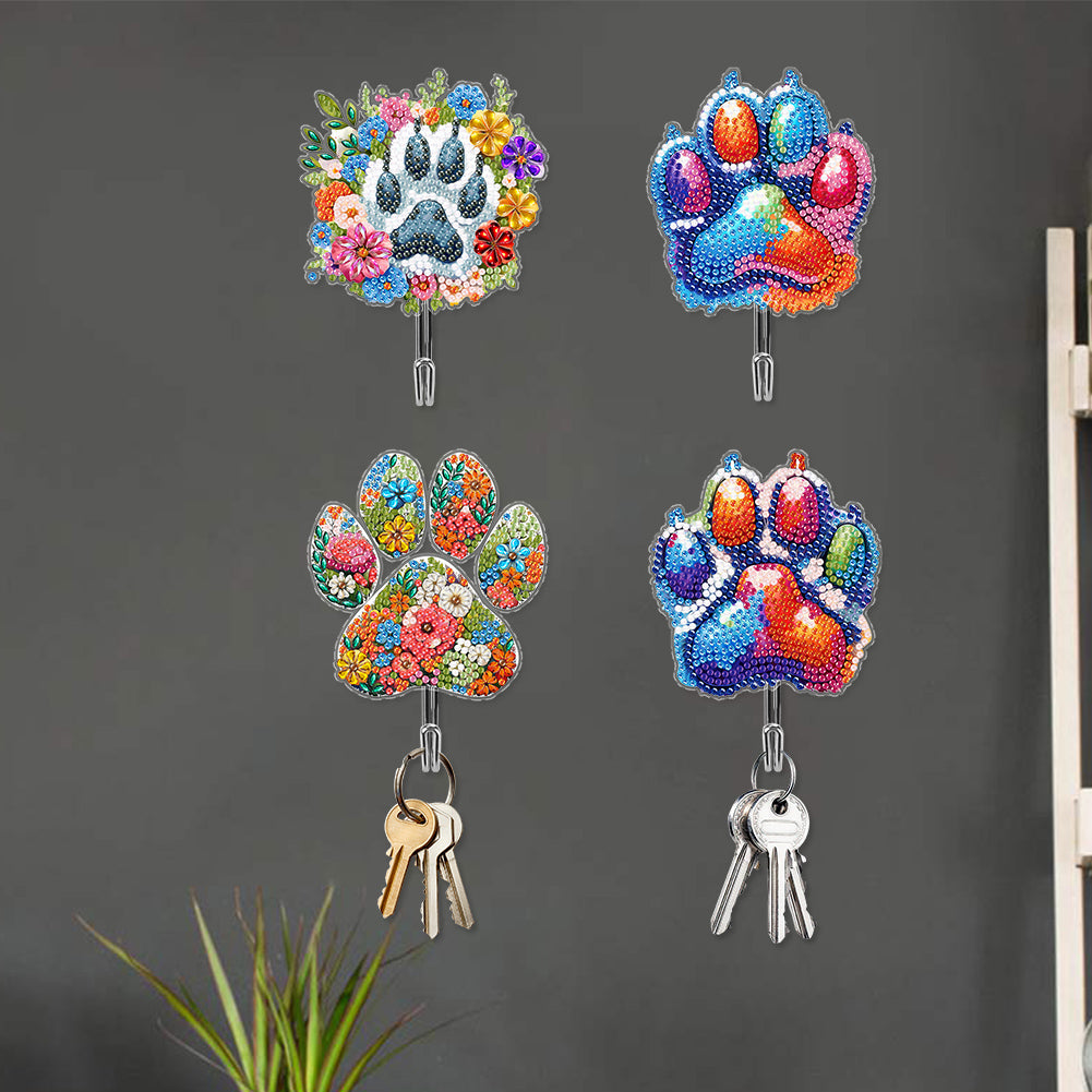4Pcs Acrylic Cartoon Rhinestone Painting Keychain Hanger Diamond Painting Hooks