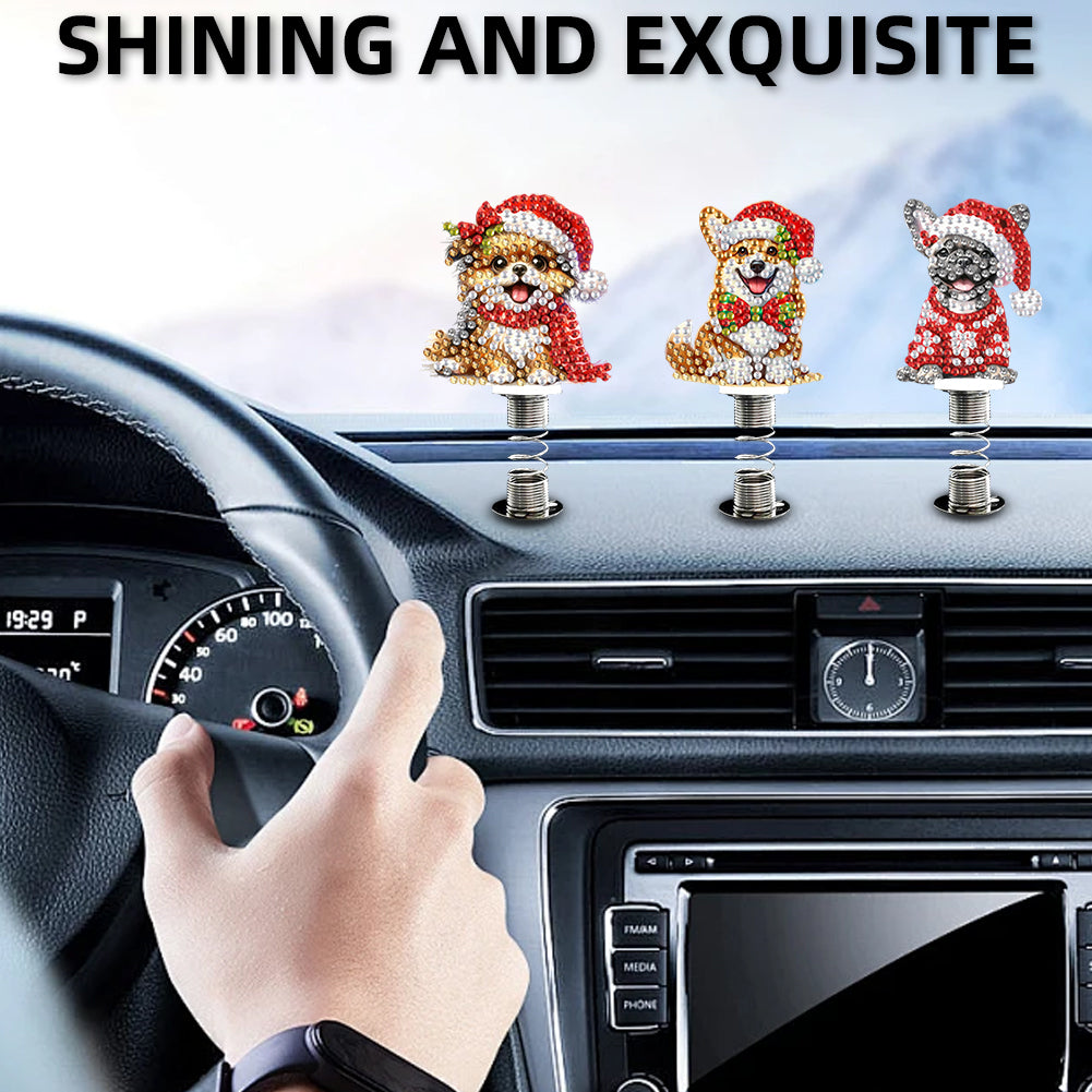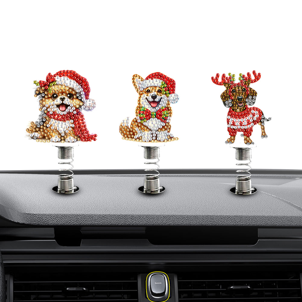 • Load image into Gallery viewer, 5pcs 2D Flat Xmas Dog DIY Diamond Painting Shake Car Ornaments for Center Console