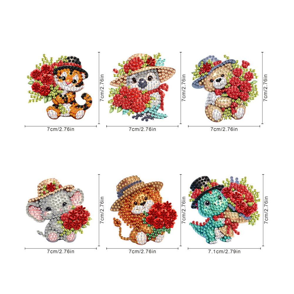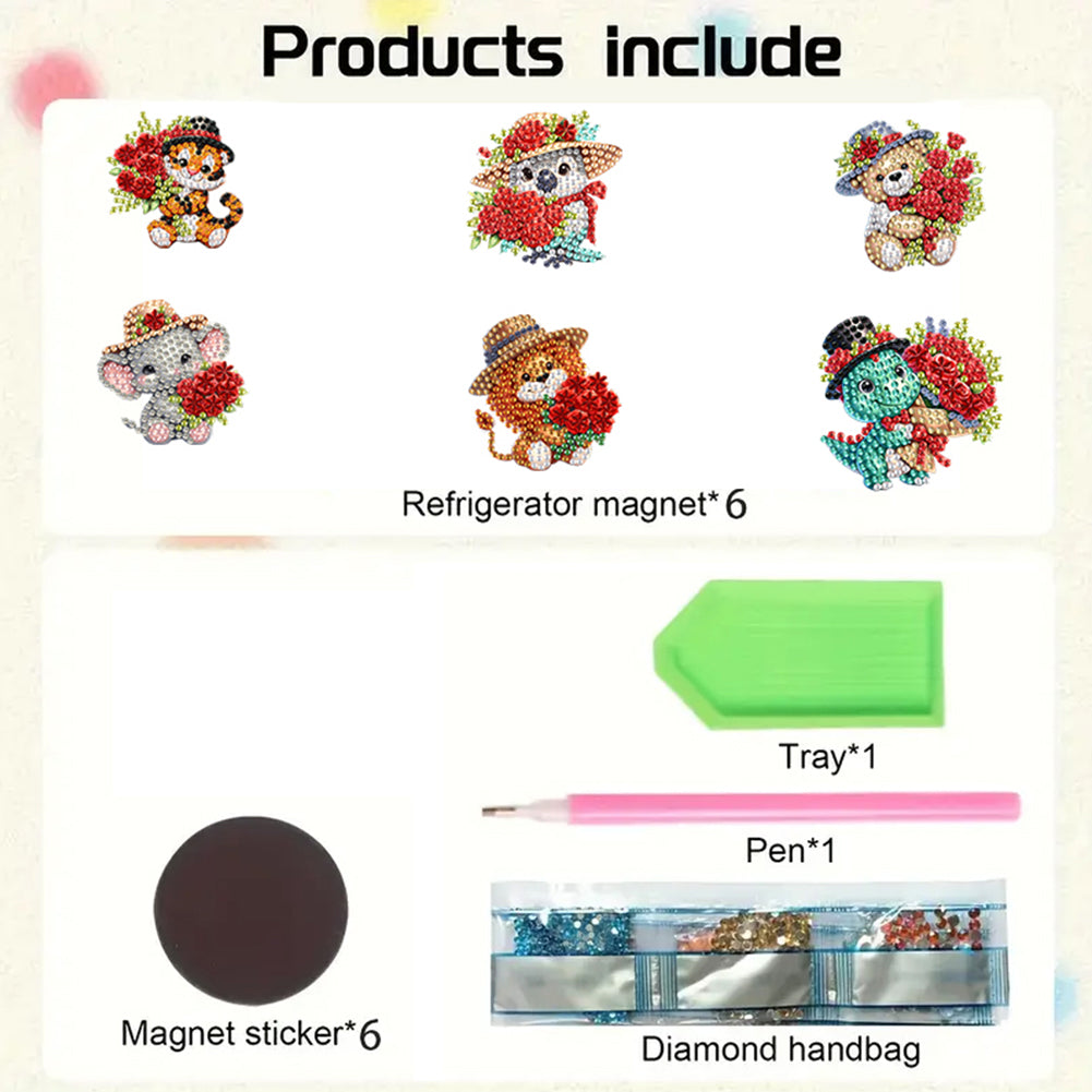 6Pcs Acrylic Animals And Flowers Fridge Stickers Diamond Art Fridge Magnet Diamond Painting Fridge Magnet for Fridge Whiteboards