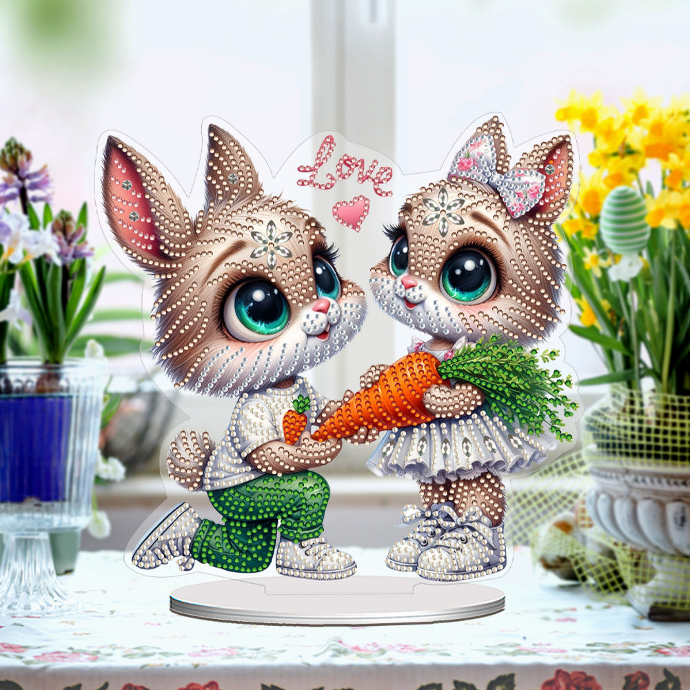• Load image into Gallery viewer, Acrylic Special Shape Carrot Rabbit Diamond Painting Desktop Decors for Home