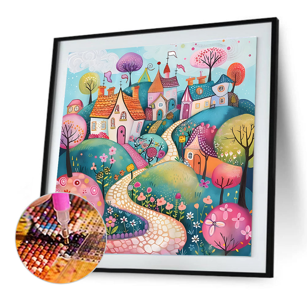 Diamond Painting - Full Round - Colorful cartoon house (30*30CM)