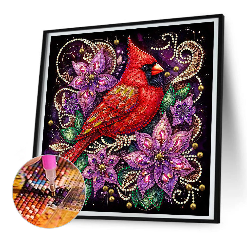 Diamond Painting - Partial Special Shaped - Red cardinal flower (30*30CM)