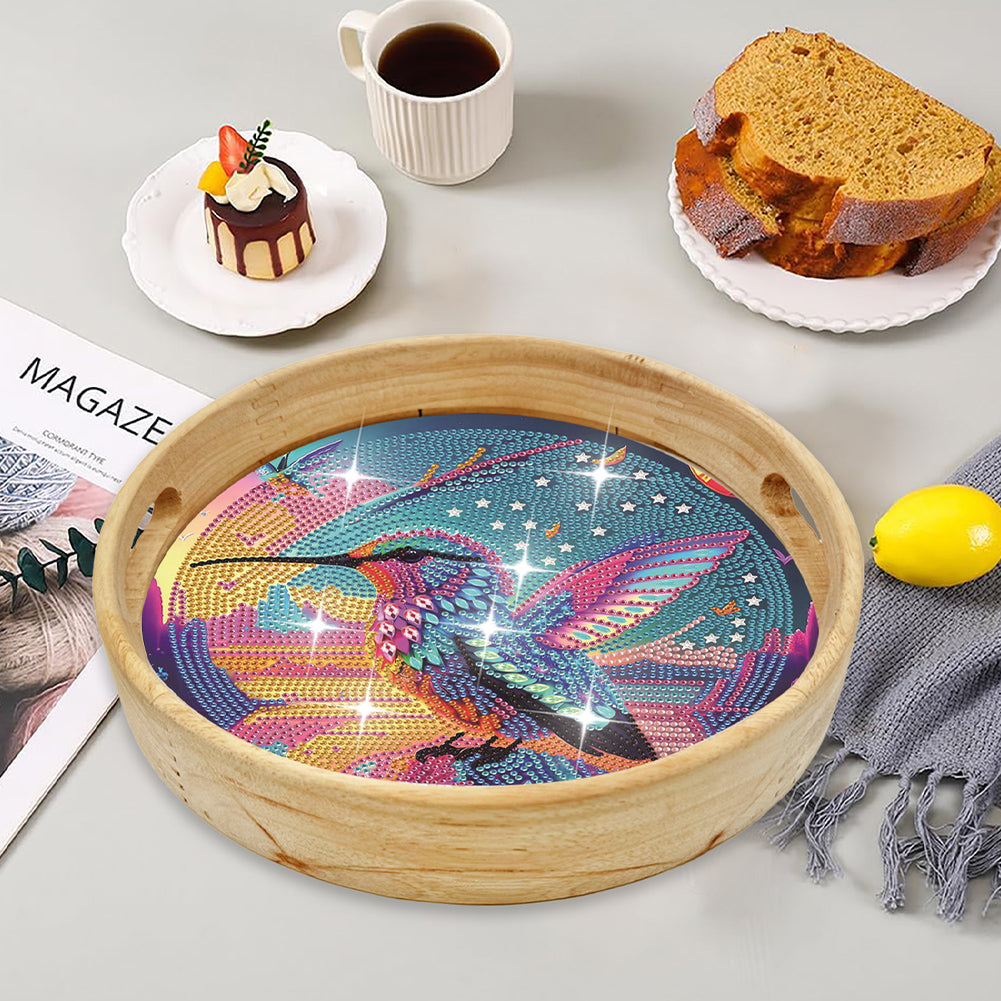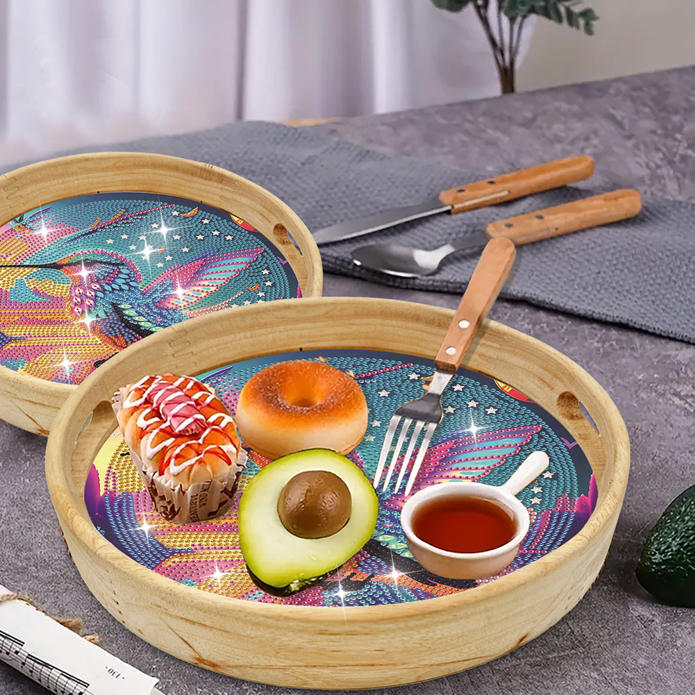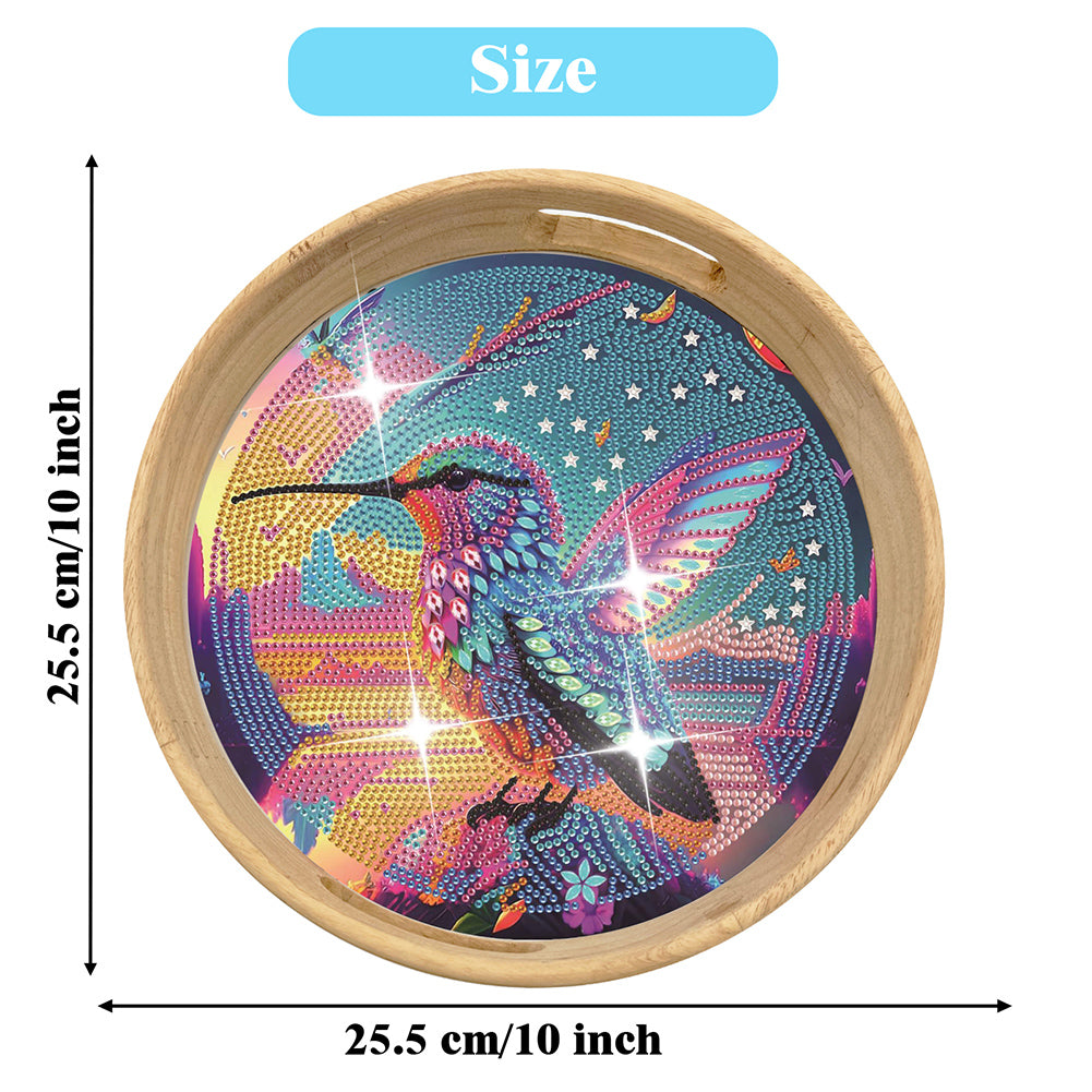 Wooden Cartoon Round Diamond Decorative Serving Tray for Desk Coffee Table