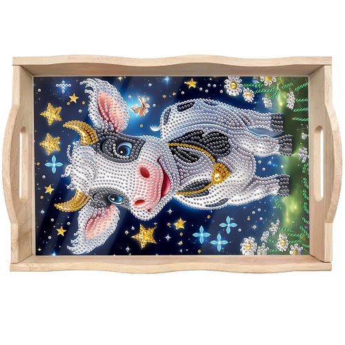 Wooden Cute Cartoon Diamond Painting Tray Art Craft with Handle for Home Decor