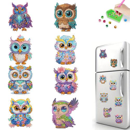 8Pcs Acrylic Cute Owl Diamond Painting Refrigerator Magnet for Car Mailbox Decor