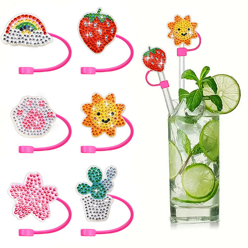 6/8Pcs Acrylic Silicone Cartoon Diamond Painting Straw Tips Protectors Decor