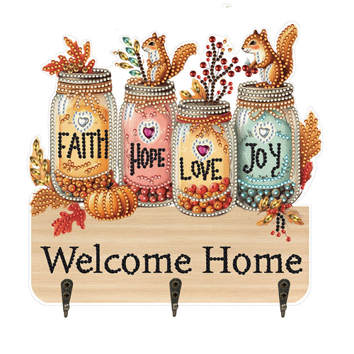 Wooden Special Shape Welcome Home Dog 3 Hooks Diamond Painting Hook Rail