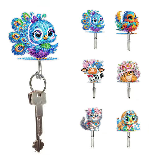 6Pcs Acrylic Animal & Flower Diamond Art Craft Wall Hooks Diamond Painting Hooks